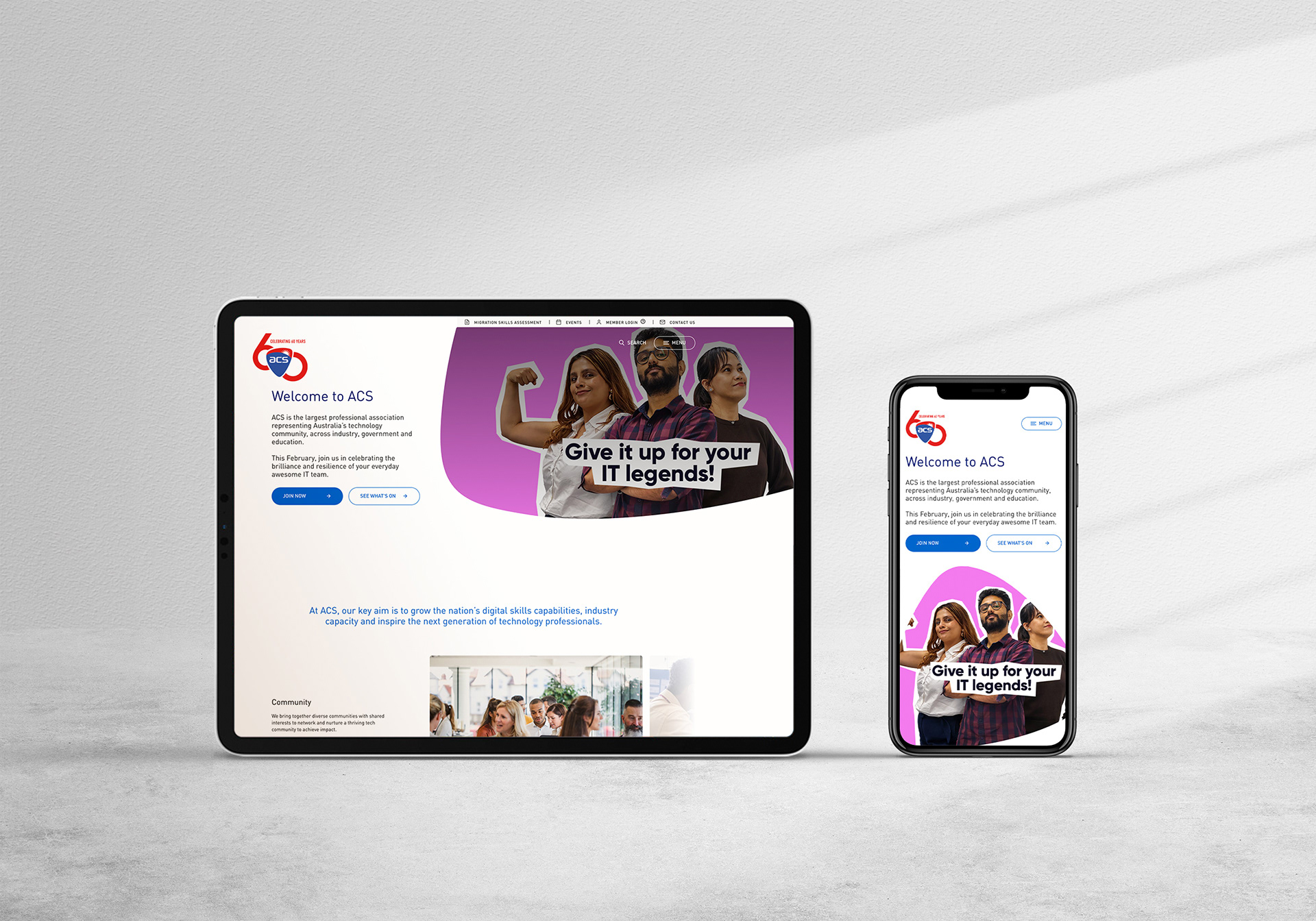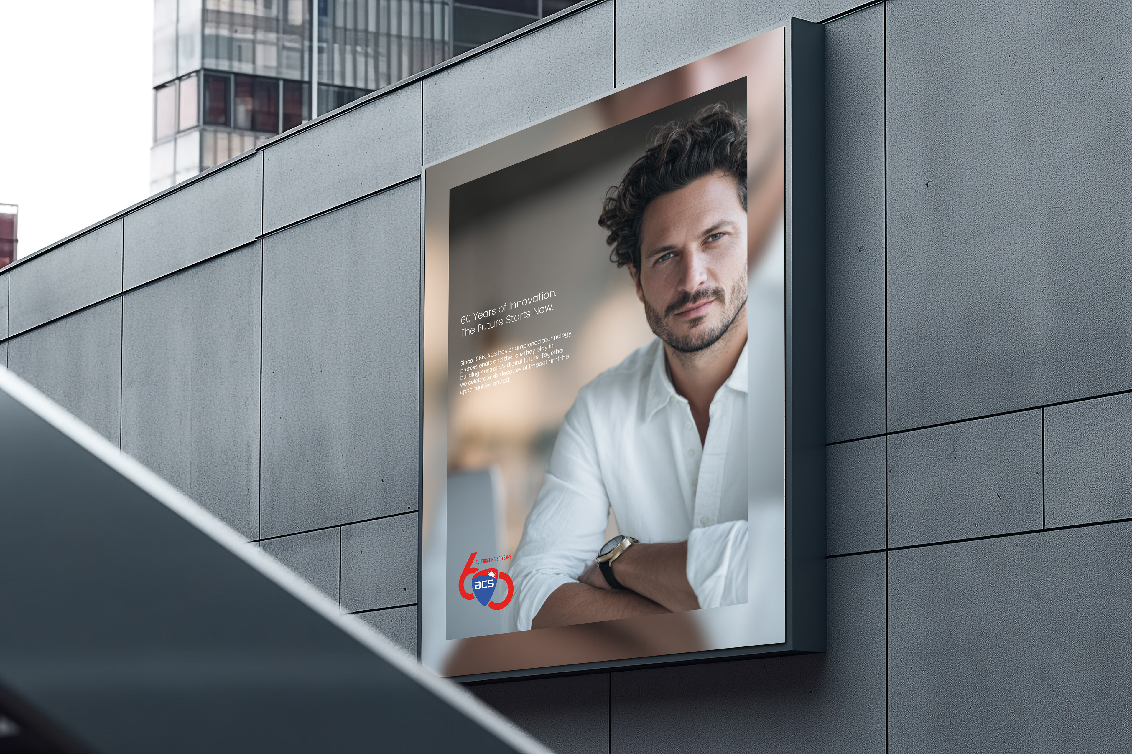 In 2026, the Australian Computer Society celebrates its 60th anniversary. To mark the milestone, a commemorative anniversary logo was created to honour the organisation’s legacy while aligning with the existing ACS brand. Working closely with the ACS team, several creative directions were explored that balanced heritage with a contemporary feel. A heritage committee representing ACS members also reviewed concepts and provided feedback throughout the process. The final marque was designed to sit seamlessly alongside the brand and support anniversary communications across a range of materials and celebrations.
